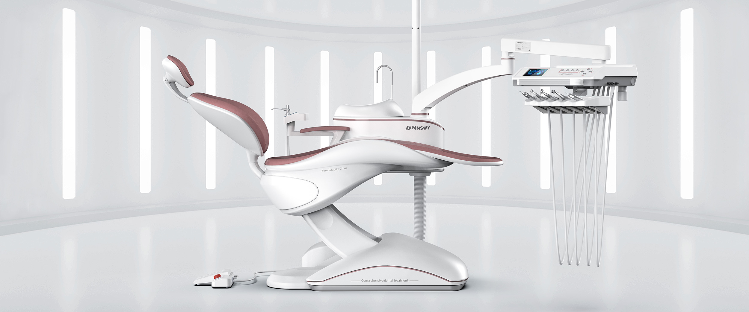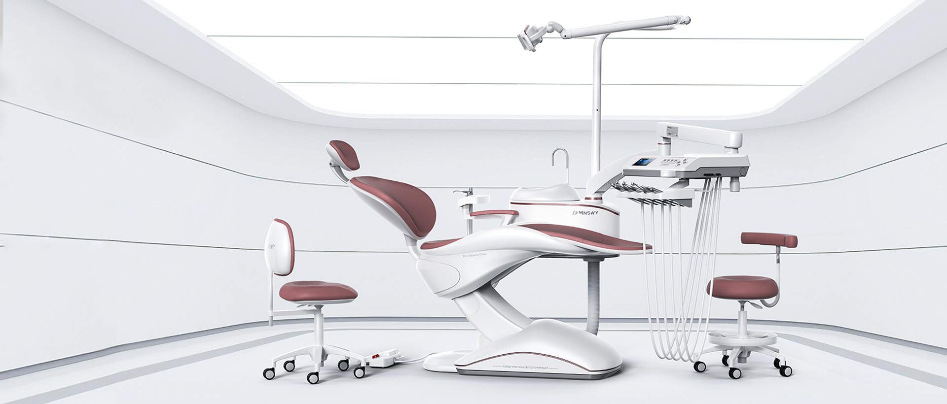 治疗椅整体采用金属材质骨架和底座,符合人体工程学的靠背设计,治疗椅表面皮革采用接触面无缝工艺缝制。整体颜色采用白色,搭配皮革和金属两种材质的玫瑰金色,流线型造型设计凸显产品的优雅美观。